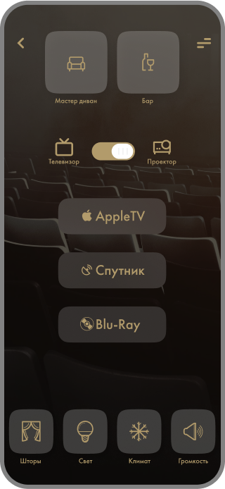 Звуковая система Atmos, ТВ+проектор, управление AV-оборудованием с планшета